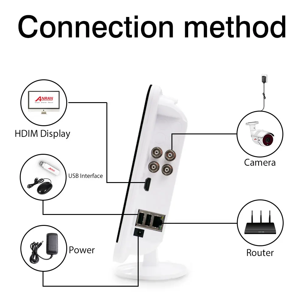 · 1x HDMI· 2x USB Interface· 1x LAN Port· 1x Power4CH DVR System: