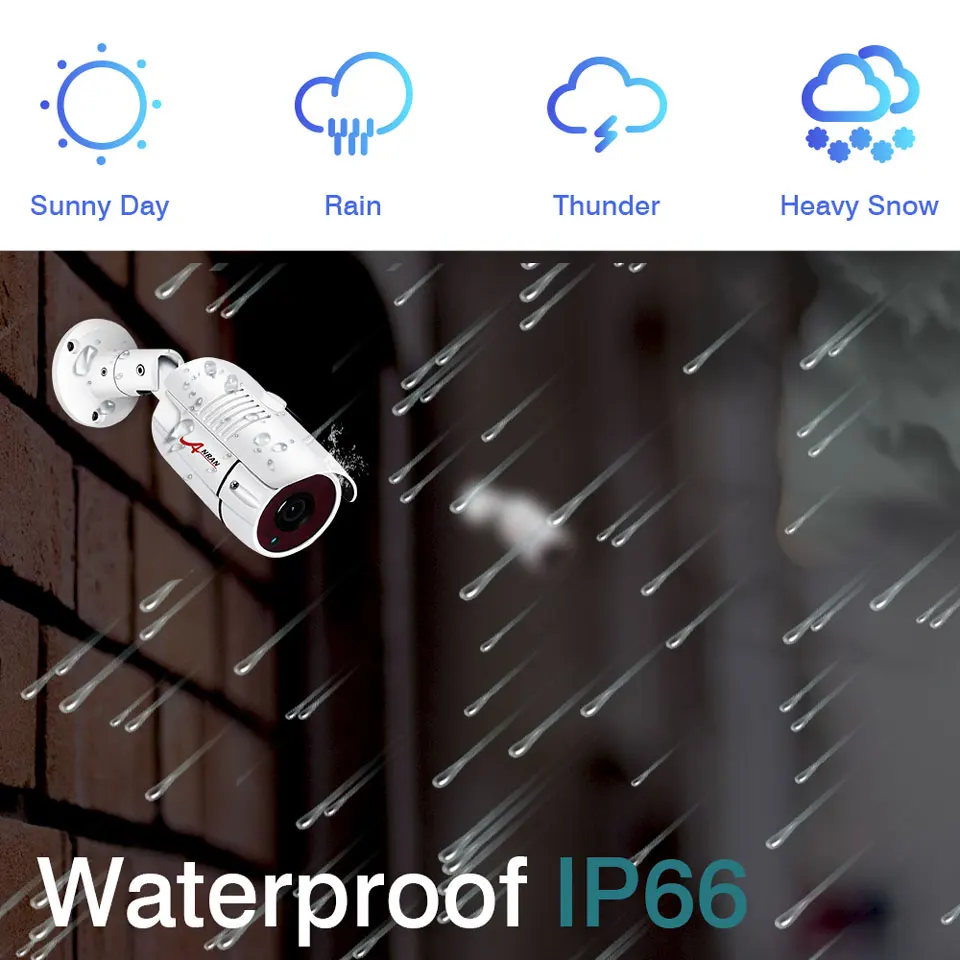 Wire-free cameras have an IP66 waterproof rating. This means that they can withstand extreme weather conditions, such as torrential downpours and snowstorms. They are also capable of operating in temperatures ranging from (-40 °C to 60 °C). So no matter where you live, the weather won't interfere with your camera's performance.