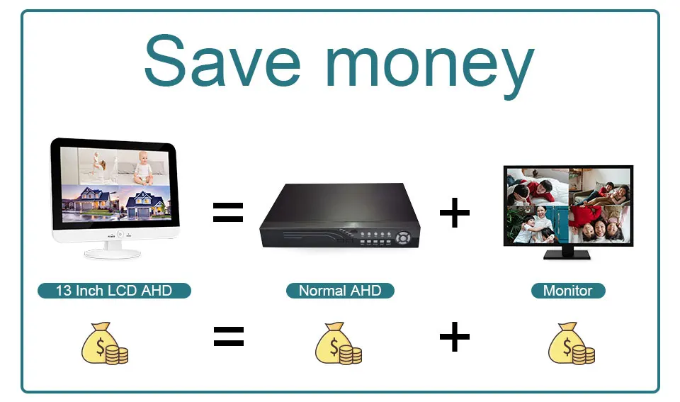 · Image Sensor: 1/2.8" Progressive Scan Sensor· Resolution: 1920*1080· Lens: The default 3.6mm· Auto White Balance and 3D-DNR· Night Vision: 36 IR Leds 100Ft (30m)· Minimum Illumination: Colour 0.1 Lux, B/W 0.01 Lux· Weatherproof: Support (IP66)Built in 13 inch LCD Monitor