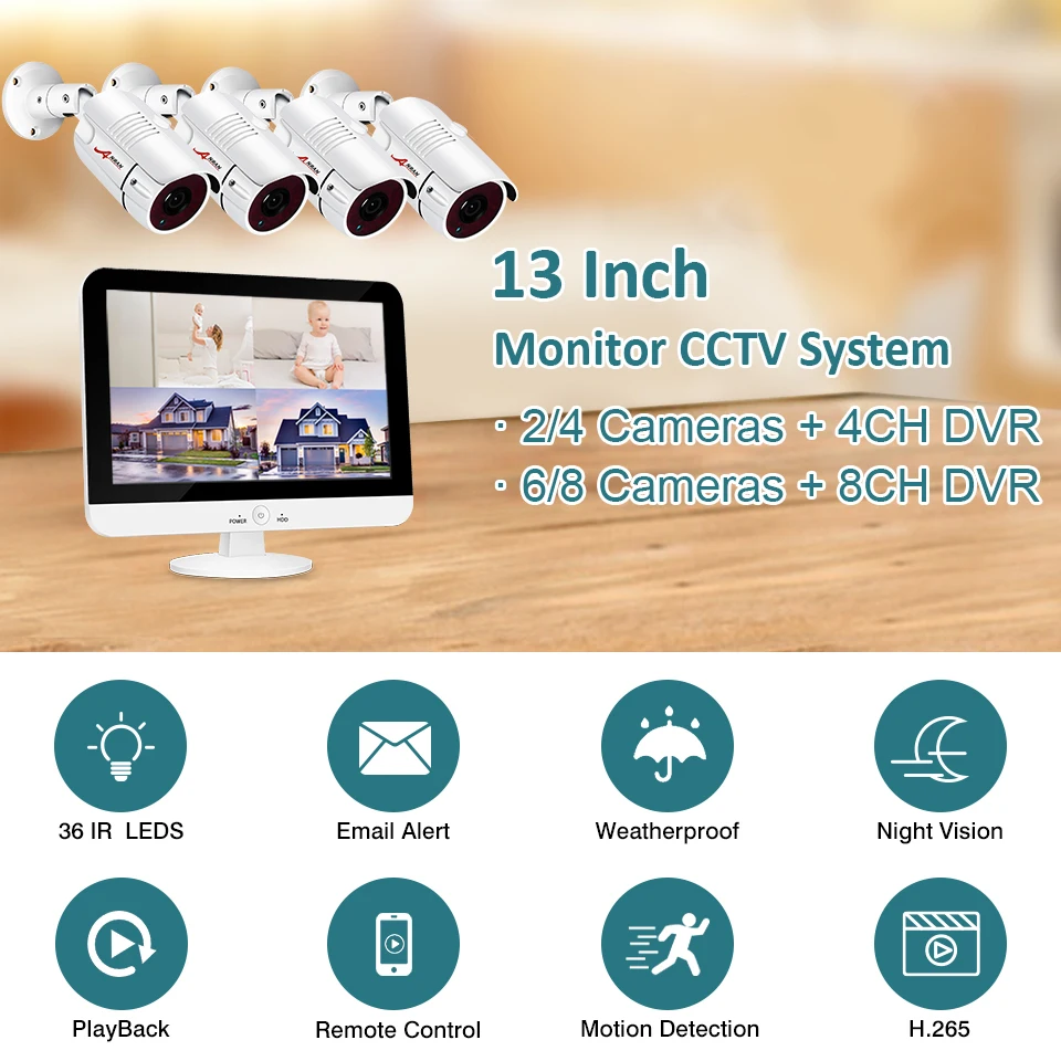 The best product you are looking for is "ANRAN 13 Inch Monitor CCTV System AHD Outdoor CCTV Camera System NVR Waterproof Video Surveillance System Night Vision IP66". This product is available and ready to be purchased. Get attractive discounts every time you shop in our store (aliexpress.com). Aliexpress also provides a coupon of $ 3 for the first buyer to shop there. don't forget to bookmark our store page so you can go shopping again anytime..