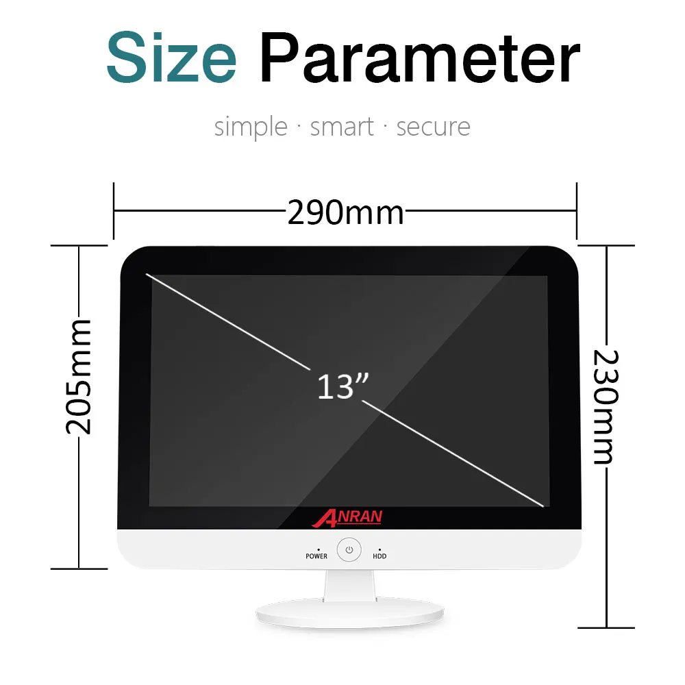 | ANRAN 13 Inch Monitor CCTV System AHD Outdoor CCTV Camera System NVR Waterproof Video Surveillance System Night Vision IP66 |