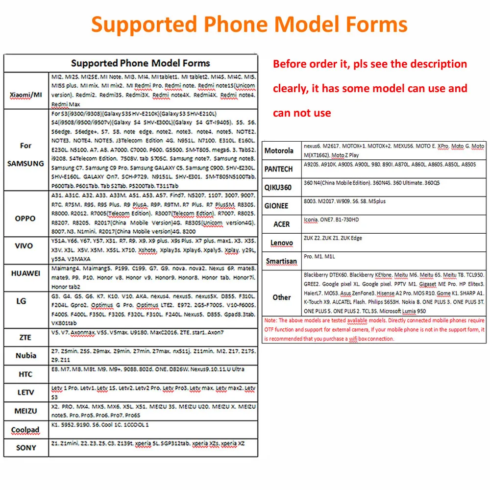 2. Please make sure your phone can support OTG functionality and also compatible with the UVC ( USB video device class) before you buy it .because some of the phone can shielded external camera . (most of recently version of android device have this function,if you not sure it can suit ,please confirm it first before you buy it )