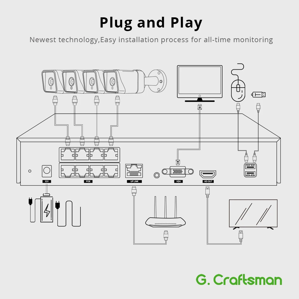 | XM Face Detection 4CH 5MP POE IP Camera System Kits Audio Waterproof CCTV Security Video Surveillance H.265+ XMEye G.Craftsman |