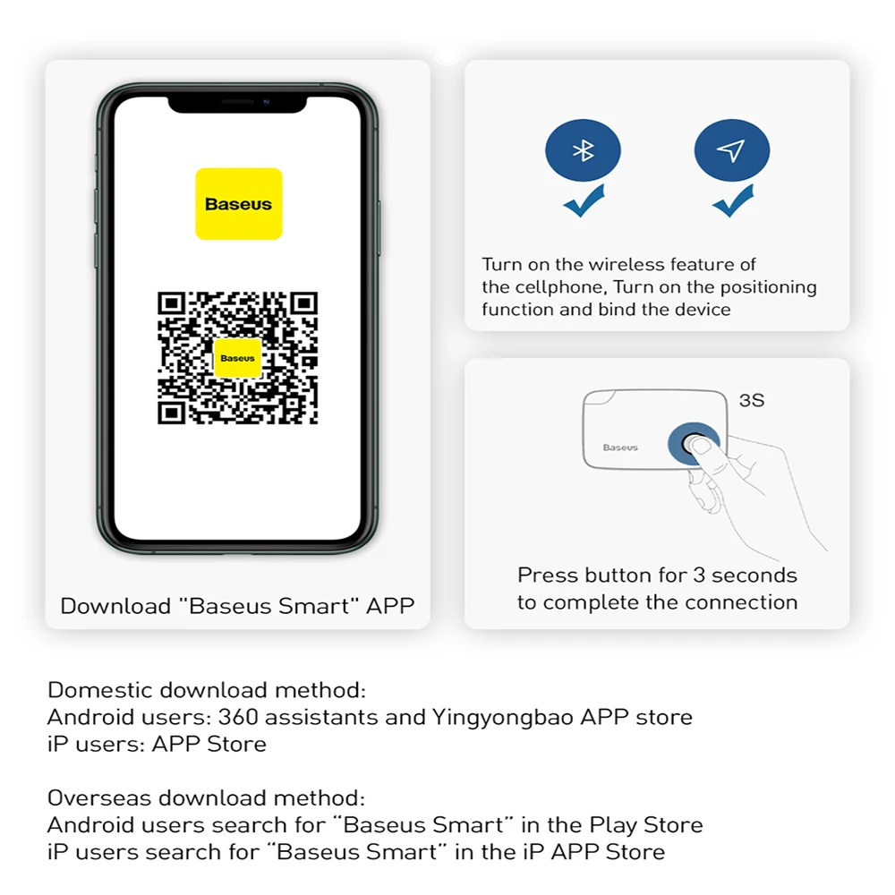 Monitor the wherabouts of items in real time by interconnecting the anti-loss device with cellphone APP, so as to prevent items from being lost and find them in time.Reverse Call Easy to Find CellphoneDisconnection Alarm Two-way Anti-loss Distance: 10m(Indoor)~30m(Outdoor)