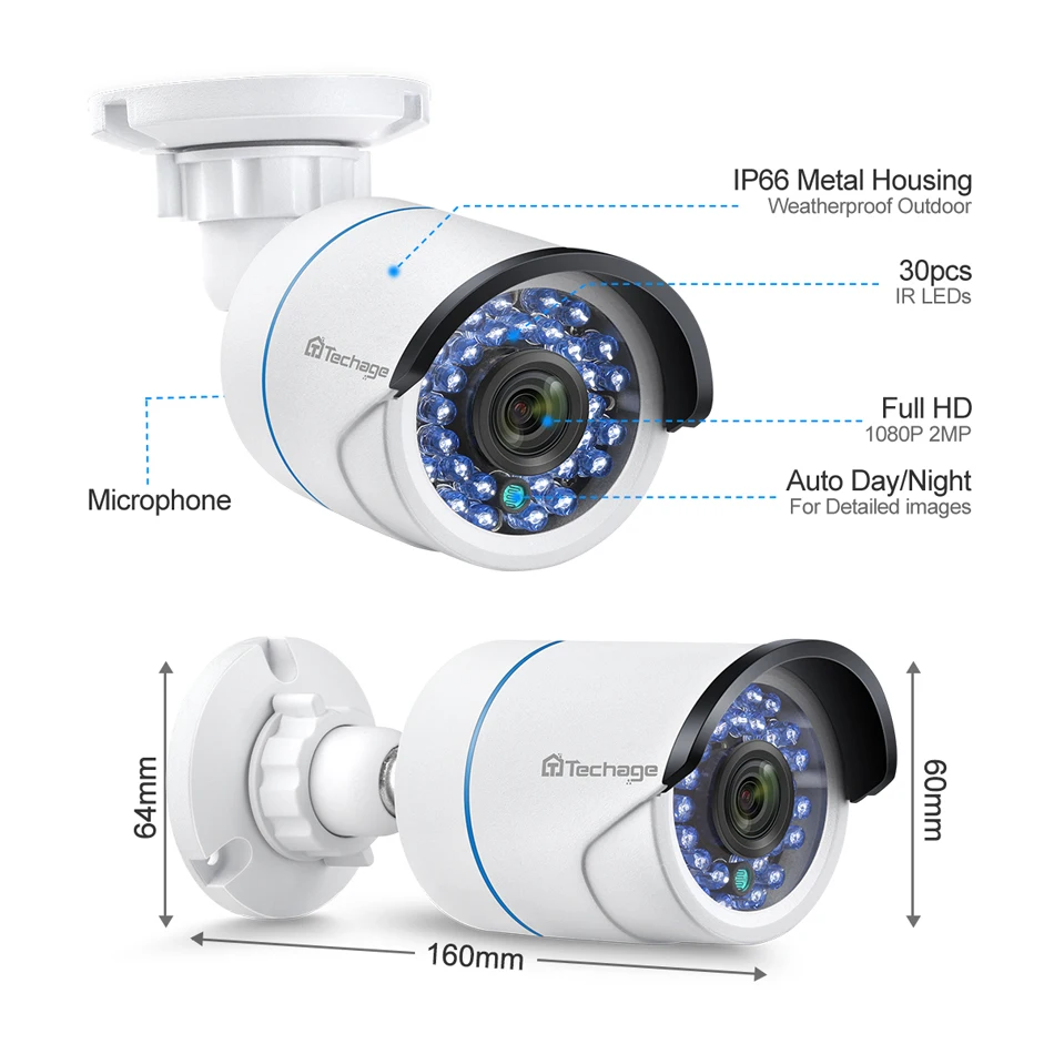1080P 2.0MP High definition image, super infrared night vision, H265 Video