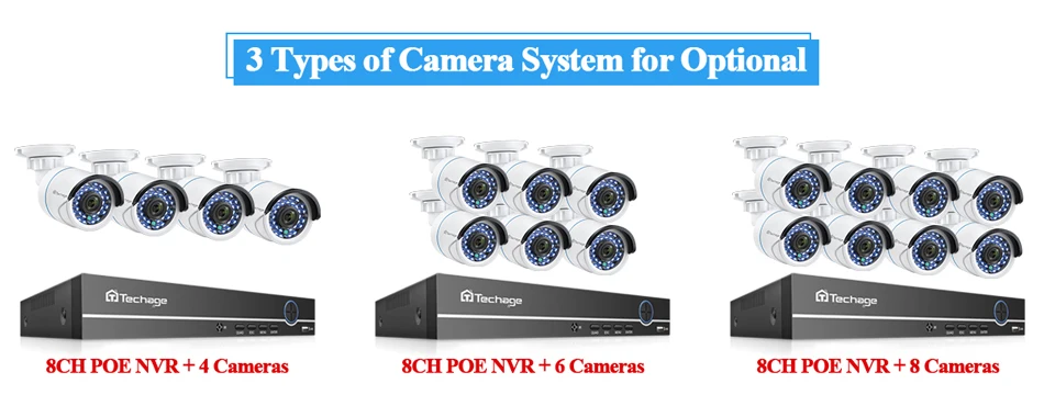 1, 8CH POE NVR + 8 Cameras / 8CH POE NVR + 6 Cameras /8CH POE NVR + 4 Camerasfor Optional