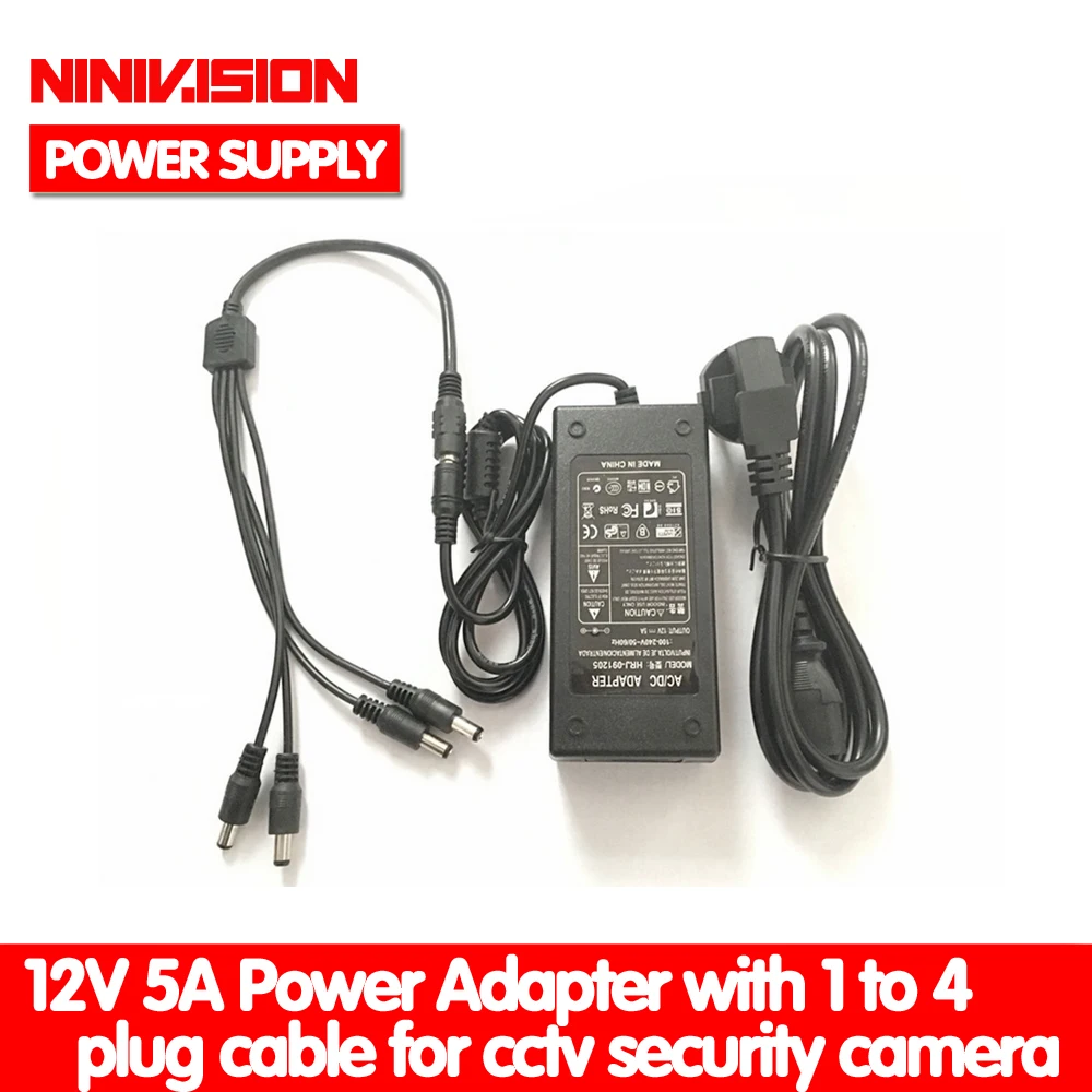 NINIVISION 12V 5A 1 to 4 Port CCTV Camera AC Adapter Power Supply Box For The CCTV Camera
