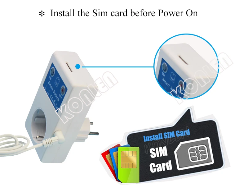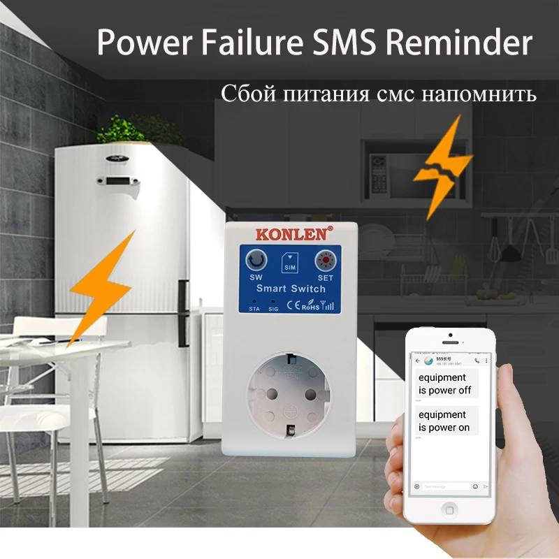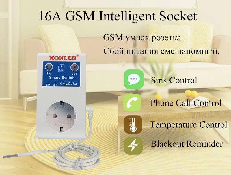 KONLEN 16A EU Home Smart GSM Temperature Control Relay Switch Intelligent Blackout Reminder Power Socket SMS Call APP Remote Control (Hot Sales )