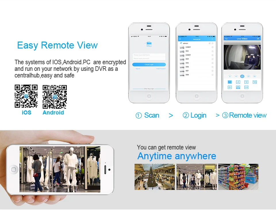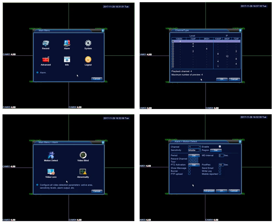 1080N HD Digital Video Recoder Features Support AHD-M series front-end real-time encoding; Support VGA, HDMI HD output; Support XM Cloud technology, easy to achieve a variety of network penetration, one step to remote monitoring, getting rid of various complicated network settings, easy and simple to operate; Support various mobile monitoring:(IOS, Android). Support multiple web browsers(IE,Chrome,Firefox,Safari); Only support English language, please note; Perfect protection circuit, unique triple watchdog function Supporting web, CMS, center platform management software MYEYE, provide SDK development. 4CH AHD-DVR Specification 8CH AHD DVR Specification Package Content 1*4CH/8CH AHD DVR HVR 1*Mouse 1*Power Supply 12V 2A ( US/EU Optional ) For AHD DVR 1-Software and usermanual Note :HDD IS NOT INCLUDED!! 4CH AHD DVR: 8CH AHD DVR: 4CH AHD DVR: 8CH AHD DVR:
