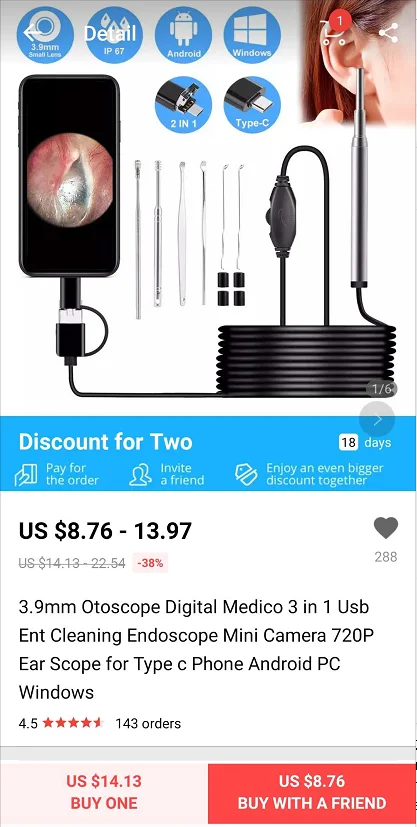 The best product you are looking for is "3.9mm Otoscope Digital Medico 3 in 1 Usb Ent Cleaning Endoscope 720P Mini Ear Scope Camera for Type c Android Phone PC Windows". This product is available and ready to be purchased. Get attractive discounts every time you shop in our store (aliexpress.com). Aliexpress also provides a coupon of $ 3 for the first buyer to shop there. don't forget to bookmark our store page so you can go shopping again anytime..