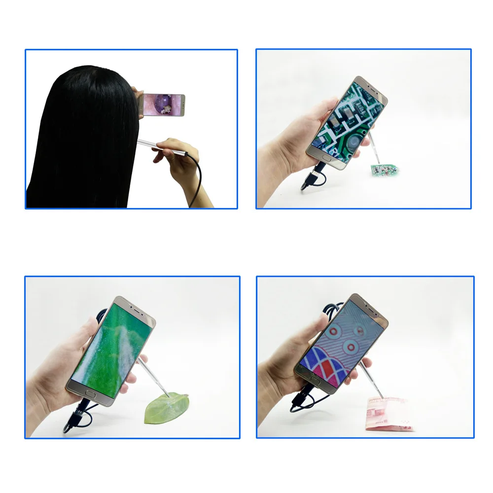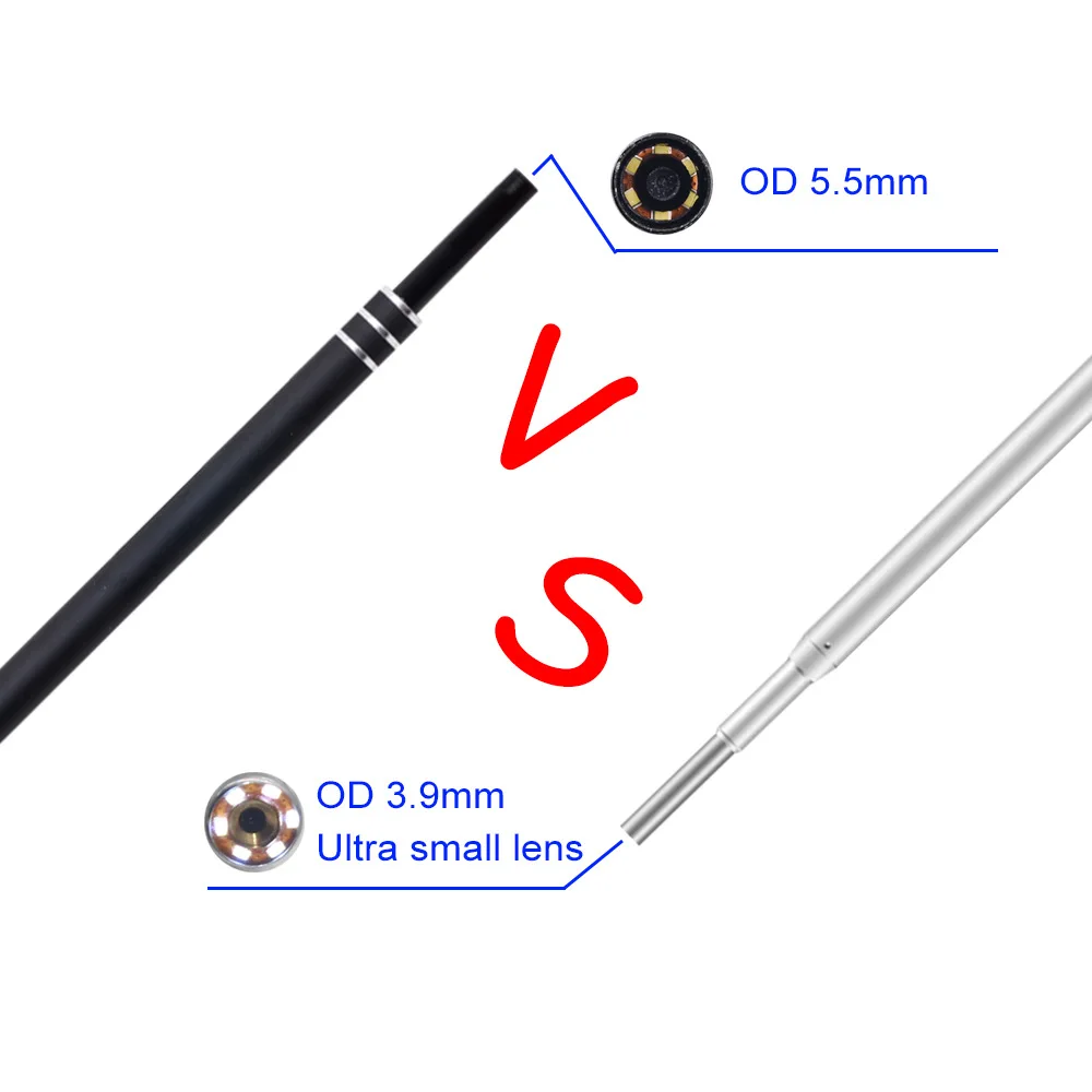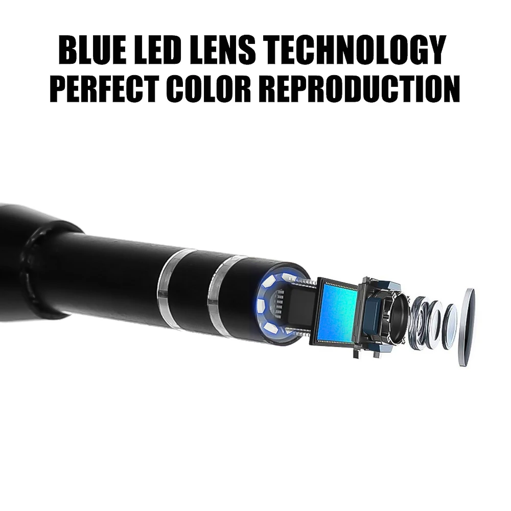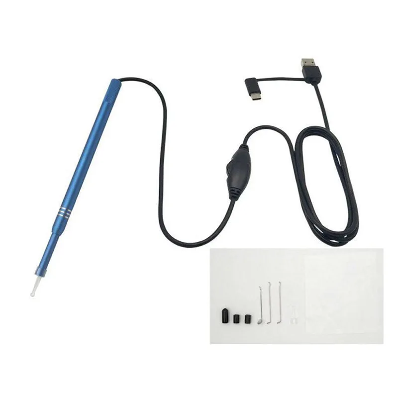 Material: PVC+ metal Color: Blue/BlackDiameter: 5.5MM Waterproof level:IP67 Interface:USB/Micro/Type c Line length: 2 m Resolution: HD 640*480 Number of LED lights:6 (with brightness adjustment) Ear cleaning endoscope package Included: