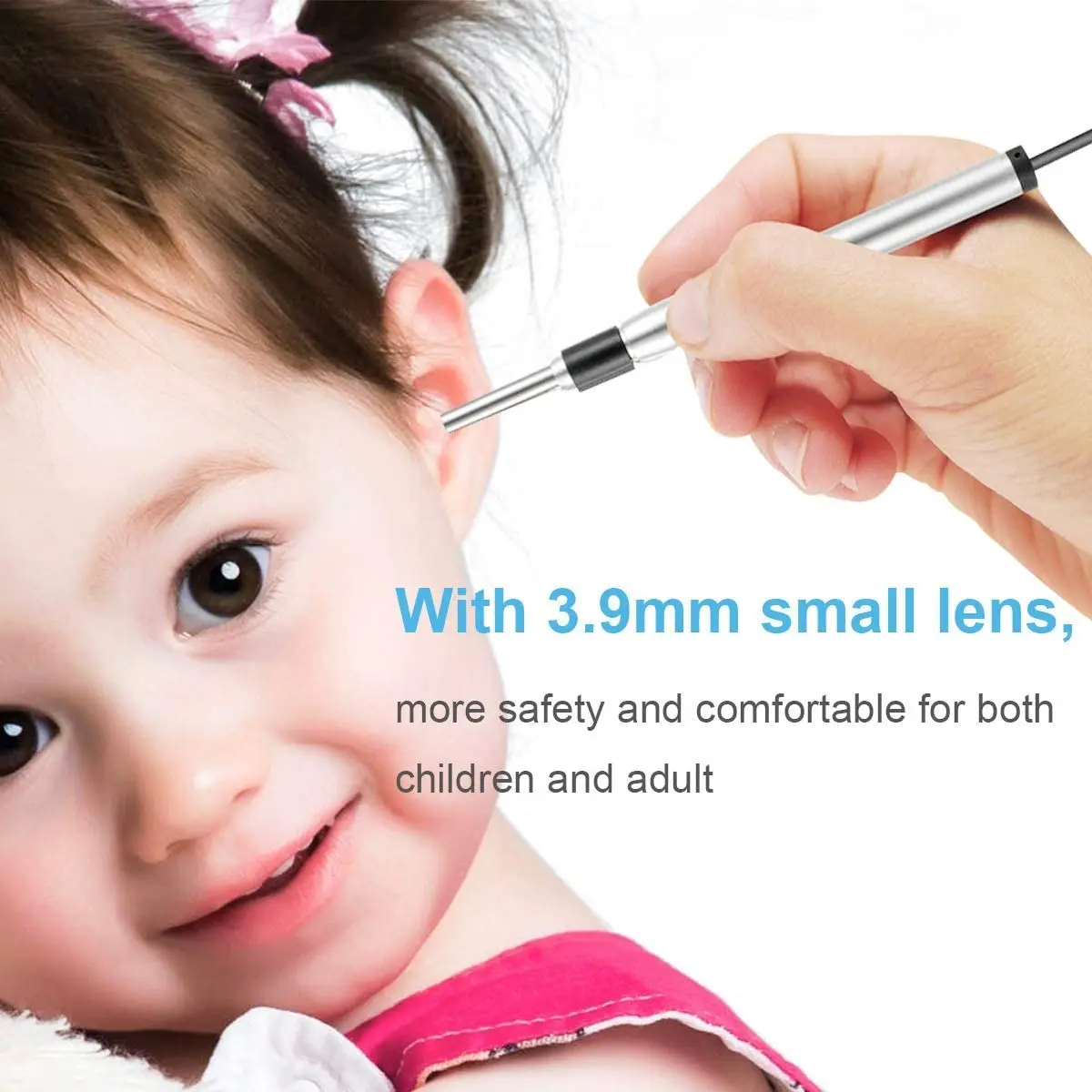 【3.9MM Small Lens design ] Different from common ear endoscope's 5.5 mm Probe ,our otoscope is 3.9 mm ,easy and safe to insert your ear ,comfortable to use for children (Child ear canal diameter: 5mm) and Adults. [720P HD Visual Ear Camera ] With 6 Adjustable Led 720P 1.0 megapixels usb otoscope,you can enjoy a wonderful experience to capture clear snapshot images or real time video. NOTICE: Its best observation focus distance to the object is 0.59-1.18inch(1.5-3cm) [Easy To Use ] Our digital ear otoscope can work on Windows/Mac OS with USB charging interface, Windows XP/7/8/10,Mac OS 10.6+ PC,Download APP,Easy to operate [Anti-Hot Chip Design] Different from common Ear endoscope's chip design,Our ear otoscope's camera chip is far away from the camera, so the camera is cool, not hot and won't hurt your ear. [Multiple Use & Easily Capture ] This ear cleaning camera works great for your pet (dogs, cats and more) as well. And it is a great inspection camera for eyes, nose, oral, skins and more. Please Notice: