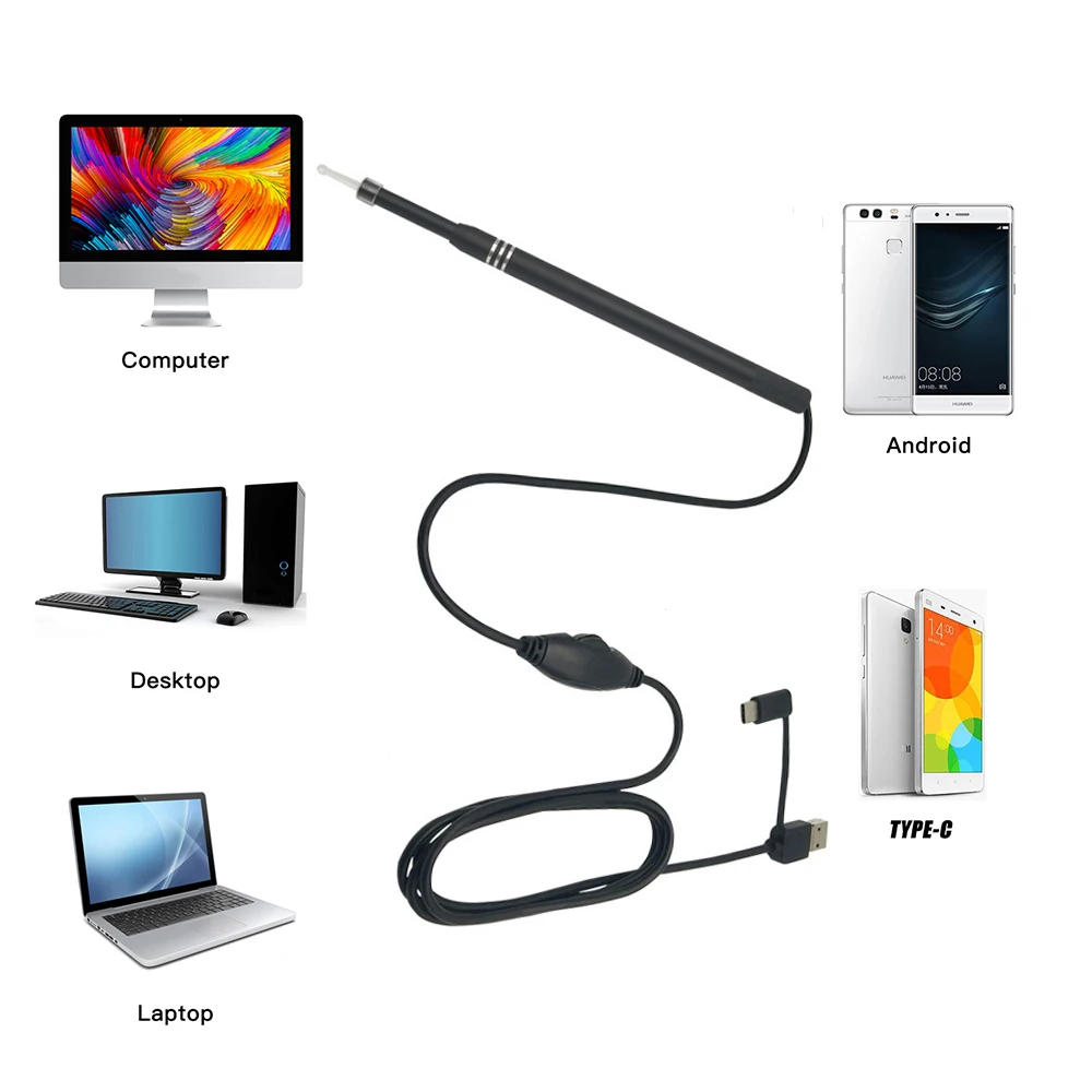 | 3.9mm Otoscope Digital Medico 3 in 1 Usb Ent Cleaning Endoscope 720P Mini Ear Scope Camera for Type c Android Phone PC Windows |