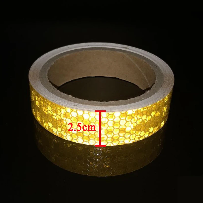 Specifications: Product: Reflective Sticker Material: PVC Color:red white yellow Width: 2.5cm Size: 2.5cmX3m/Roll Features: Made of reflective film, it is highly visible in the light, waterproof, durable.Strongly reflective, helping to identify the vehicles and avoid accident happen when night driving.