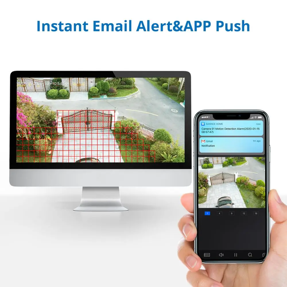 SANNCE 8CH 1080N DVR 1080N CCTV System 1080P 2.0MP Security Cameras IR outdoor IP66 Video Surveillance kit motion detection