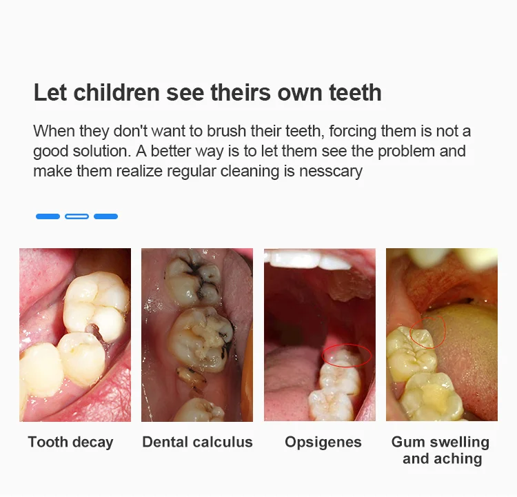 1.Recommened using with mobile phone and pad ,you can press the camera button directly while taking your teeth photo .
