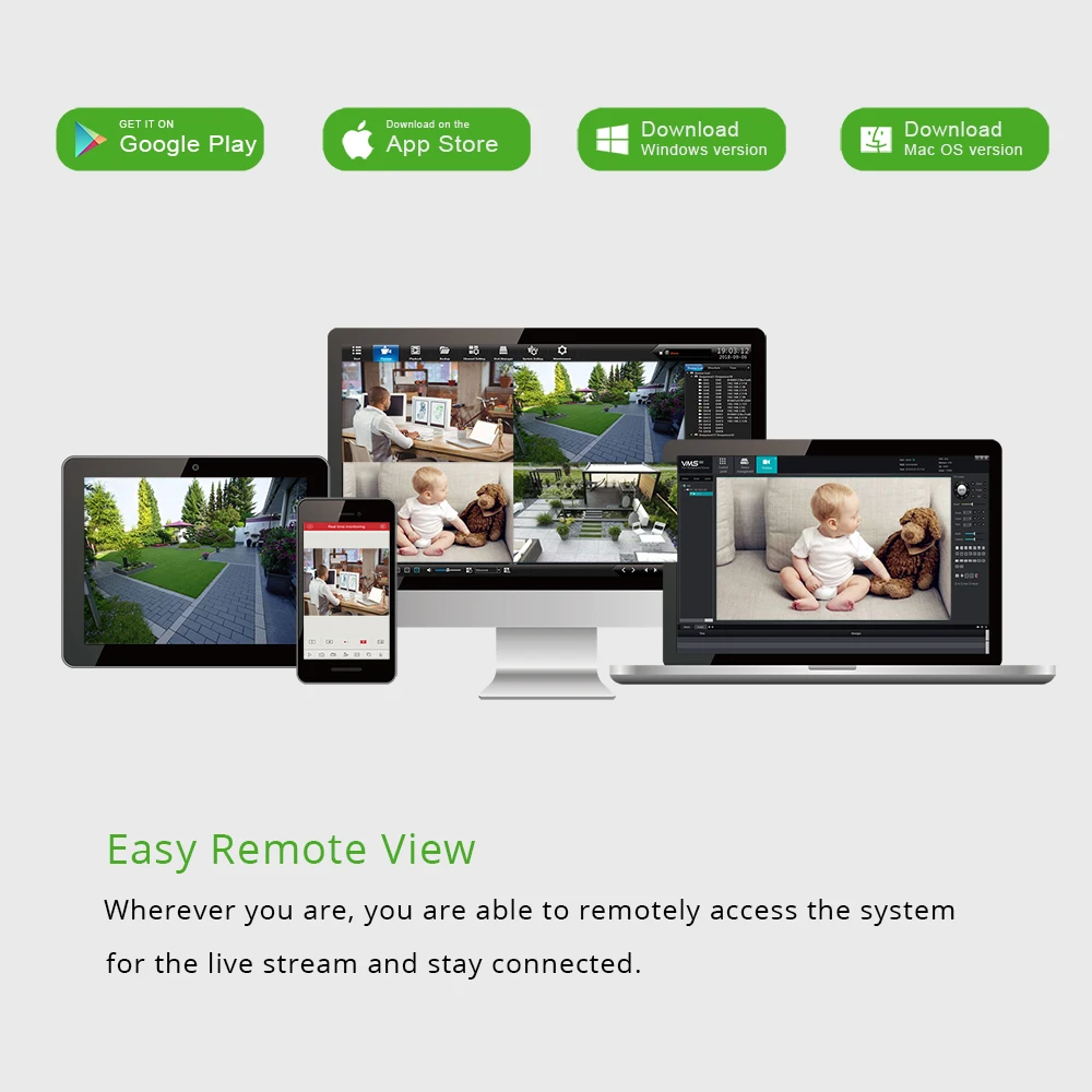 No matter where you are, you can remotely access the security camera to see live streaming and stay connected.