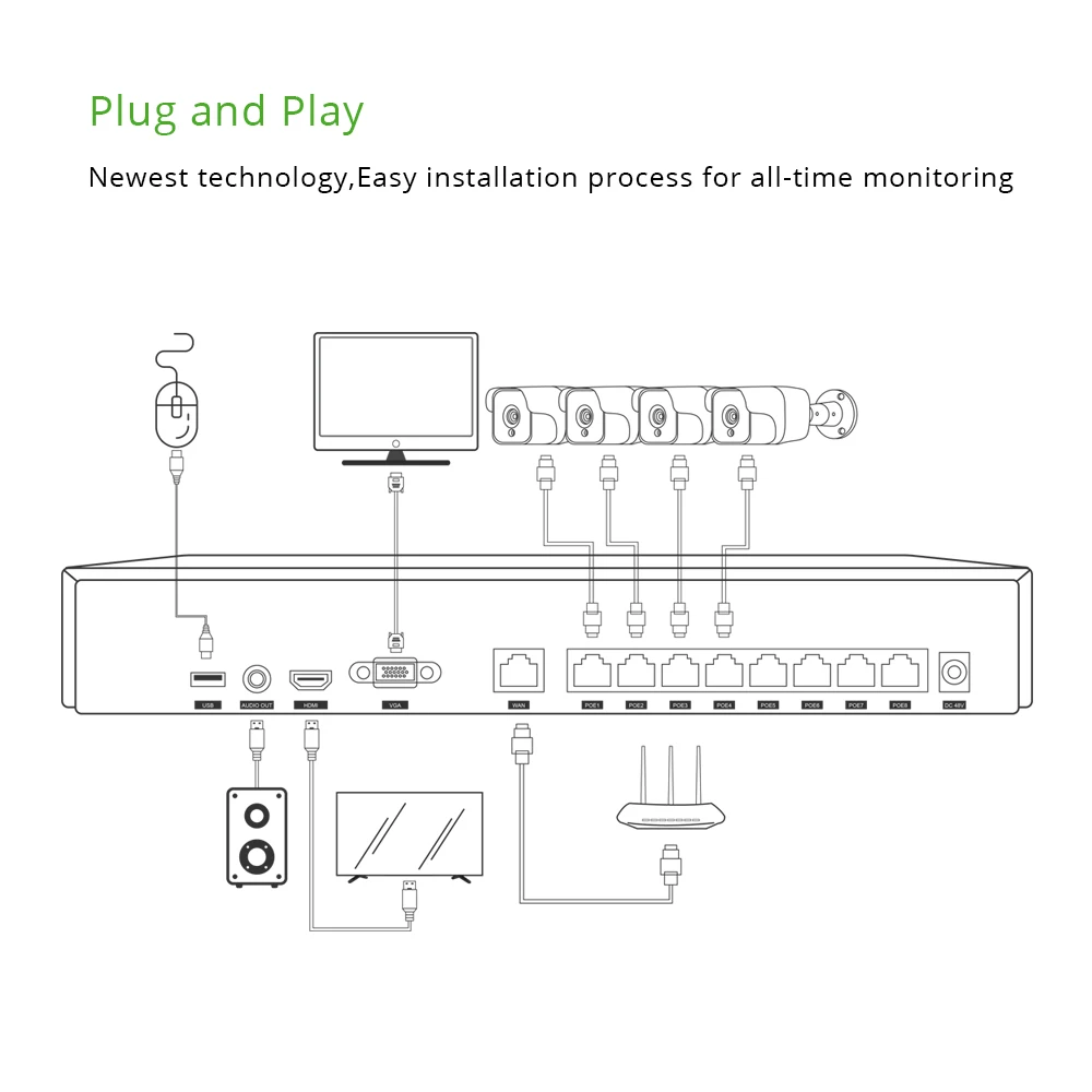 ·We can provide you professional security protection design and help you make every perfect detail.·In case you have any question about the choosing of camera/NVR or the wiring, please feel free to contact us