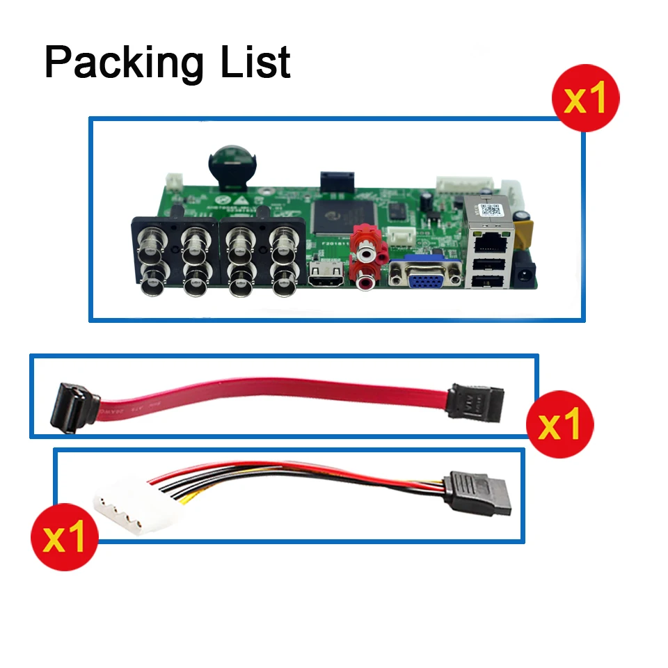 1.Applicable power supply is DC12V-2A.Please use the dedicated power supply DC12V-2A for the video recorder to avoid burning the motherboard. It is recommended to buy the power supply from this shop, and we will conduct a test before sending it out.2.If there is no signal from HDMI, it is because the resolution is not compatible, please try to adjust the resolution of the monitor.3.When signing for the package, please open the package to check whether it is damaged. If it is damaged, please refuse to accept it; in addition, after signing for the package, disputes about product damage will not be accepted.8CH AHD DVR Motherboard