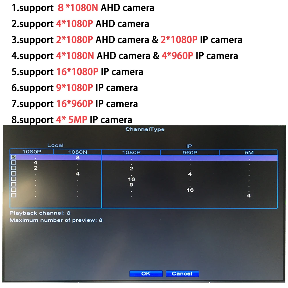 | AOUERTK 5 in 1AHD CVI TVI CVBS 8CH 1 SATA CCTV DVR Video Recorder Board Motion Detection Video surveillance Camera Recoerder |