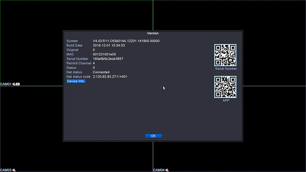 Please check the serial number on the version page of the DVR, please do not follow the QR code of the DVR sticker
